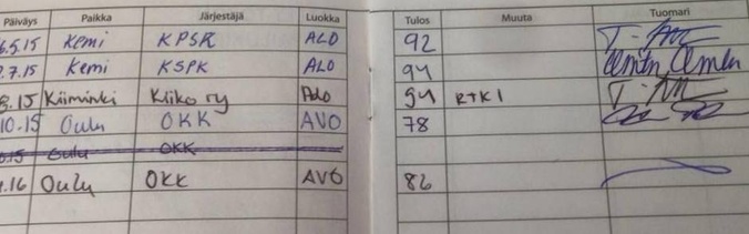 Merri-pumi rally-tokoilee Merrin kanssa aloitimme rally-tokon harrastamisen alkuvuodesta 2015. Olin silloin käynyt rally-tokon alkeiskurssin toisen, eri rotuisen, koirani kanssa. Totta kai näitä oppeja piti harjoitella myös Merrin kanssa. Monet rally-tokon liikkeet Merri osasi jo ennestään, koska olimmehan kuitenkin harjoitelleet ihan perustottelevaisuutta: istuminen, maahanmeno, seuraaminen jne. Paljoakaan en siis joutunut koiralle uusia liikkeitä opettamaan. Ensimmäisiin kisoihin menimme jo kesällä 2015 ja kyllä homma jännitti, koska olimme tehneet häiriötreeniä oikeiden kylttien ja yleisön kanssa hyvin vähän. Merri kuitenkin selvisi radasta hienosti ja oli kuulolla, vain muutamaa tötsää piti käydä nuuskimassa matkan varrella. Kesän aikana kisasimme myös kaksi muuta hyväksyttyä tulosta alokasluokasta ja saavutimme näin ollen rtk1 koulutustunnuksen. Kaikilta radoilta saavutimme pisteitä yli 90, mikä on hyvä saavutus. Kisaaminen jatkuu ja tällä hetkellä tähtäimessä on avoimen luokan koulari. |